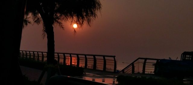 夕阳渐渐沉下去,半圆、孤影、一条线,最后完全沉落消失不见。仅剩一点点暗淡的光在挣扎,黑幕已笼罩整个天空,明月也已高高挂起。