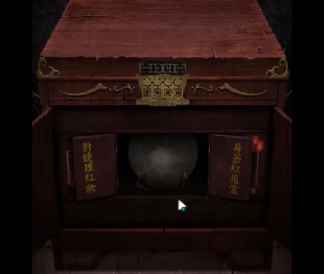 黄明昊打开箱子的门,里面又是两扇小门,拉开小门,里面放着一面古老的铜镜,勉强能找出人影来,而那两扇小门被拉开后,它的背面写着“身着红罗裳,对镜理红妆。”看来,这是一面新娘出嫁上妆时使用的铜镜。