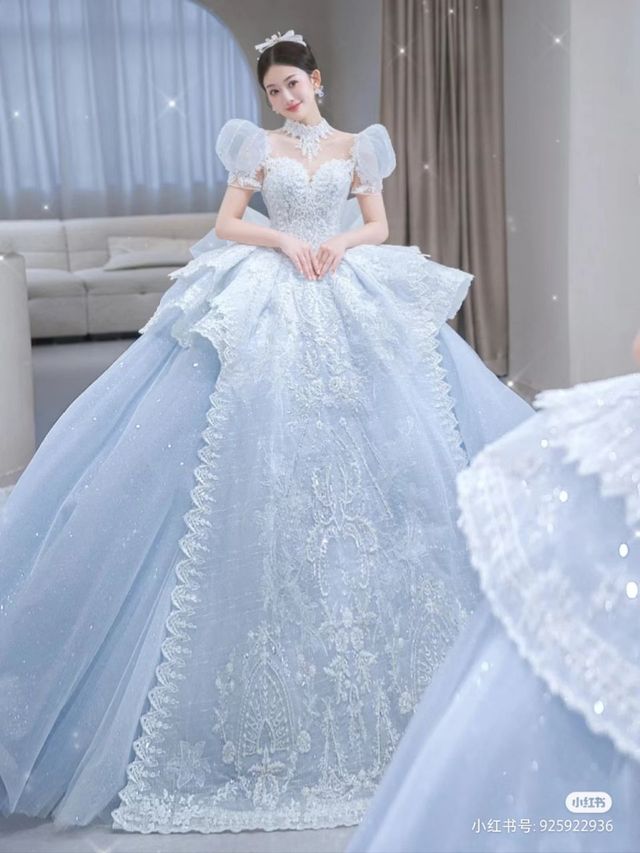 最后周卿选择了蓝色系婚纱