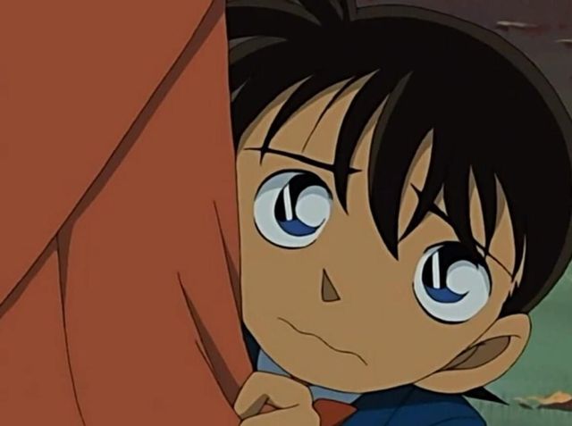 柯南看着眼睛有点泪的小兰,低下了头