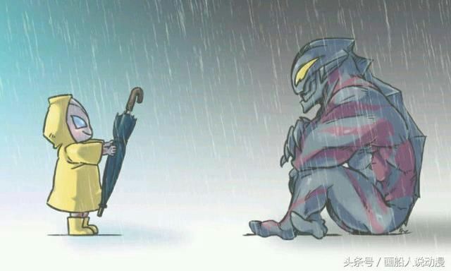 天空灰蒙蒙的,没过一会儿便下起了倾盆大雨,一个黑色的奥特战士坐在雨中,任由风雨吹打自己。