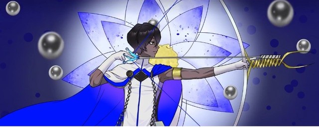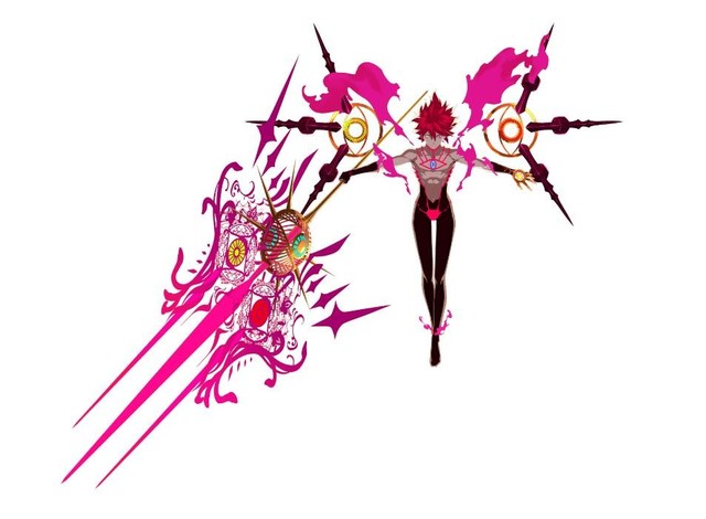 身着白色战装,手持苍炎之矢与大小有些夸张的白色巨弓,形象清廉肃正,擅长远程与范围攻击,并可进行近战。其宝具为“破坏神之振臂(破壊神の手翳)”,展现强大战斗力。