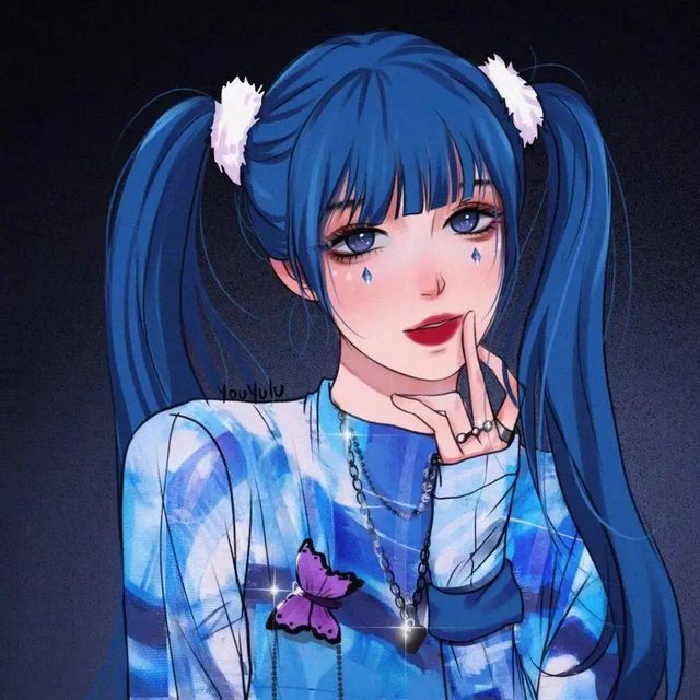 梓涵的深蓝色的头发,看起来很美