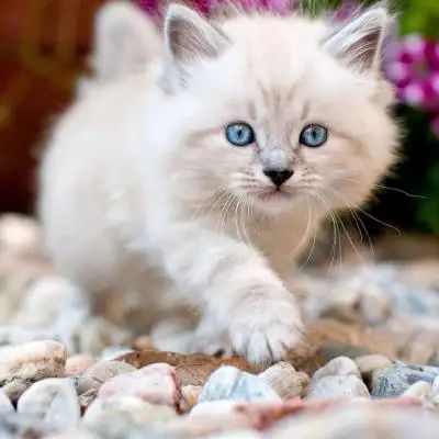 颜姝被那只白色的小猫咪吓了一跳,一把把那只扔在地上了!