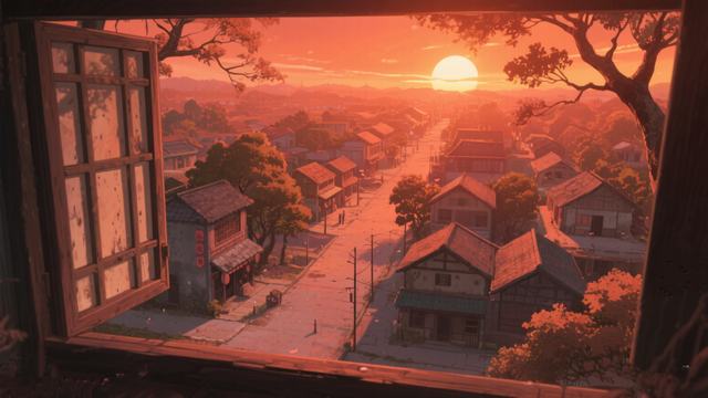 九天进到房间,环视一番。房间不大,设施比较陈旧,似乎很久没有人住过了,布置也很简洁:墙上开了一扇窗,窗下放着一张桌子,桌子旁铺着一张床,周围放了两个柜子。他放下行李,轻轻推开那扇窗,一时间,微风轻拂他的脸庞,落日辉映下的风月村此时才露出他的全貌,风中的树木枝繁叶茂,随风舞动,那是桃花树、樱花树与杏树,只可惜不是落花时节。