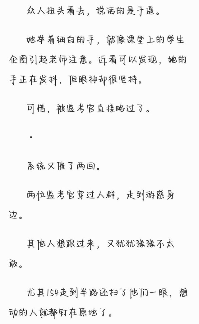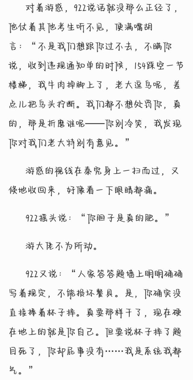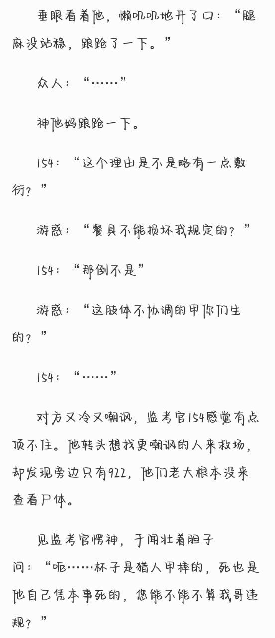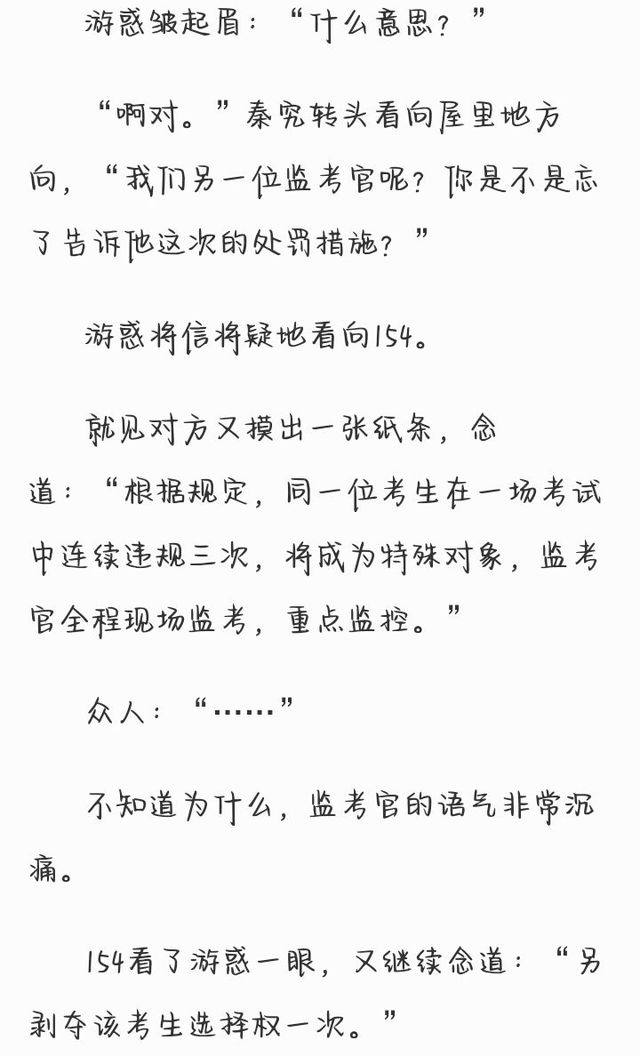 154生怕某监考官和某考生当场打出血,某执行官大开杀戒,连忙绷着脸说:“——某位考生违规答题,致使该题中的主干部分——”