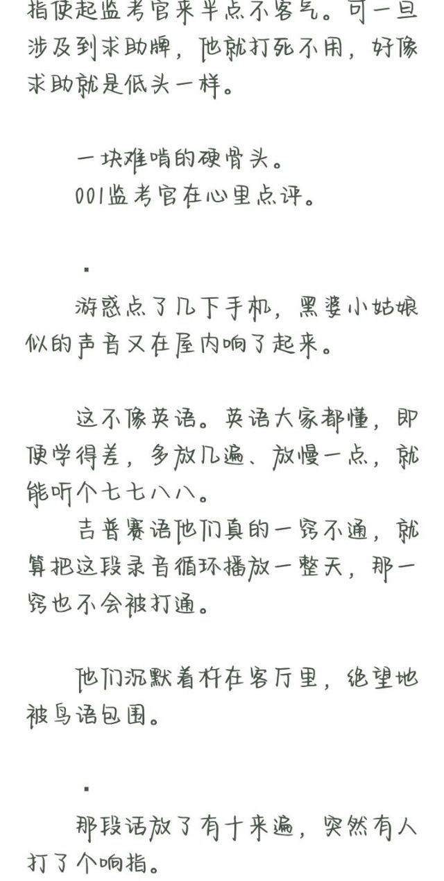 “看我干嘛?本来除了开卷考以外其他考试都不能使用手机,你们录音的时候我本来要收手机的,不想了想还是给你们一点希望吧,系统都没亮小红灯我急什么。”