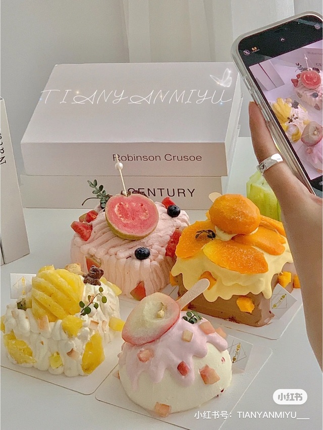 茉莉这是我最近在做的奶油蛋糕系列,有菠萝味的,芒果味的,桃子味的,还有西瓜味的,用的是椰子味的奶油哦