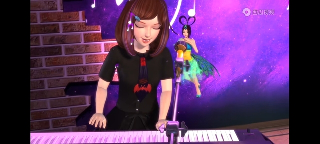 陈思思弹奏音乐融入其中,看着弹得投入的主人