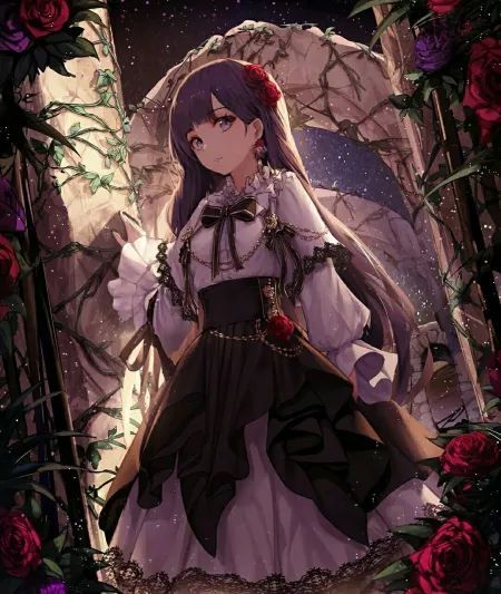 梓婳被水龙冲击到旁边被鲜花缠绕的柱子,鲜血把她那衣裙染红,给她增添了一种狼狈的美。