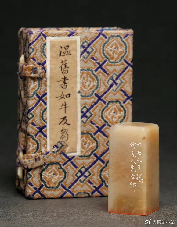芮雪刻寿山石印章,印文:温旧书如牛反刍。印面尺寸:2.0×1.9厘米,高4.2厘米,双照楼旧藏。清宁—金石篆刻艺术