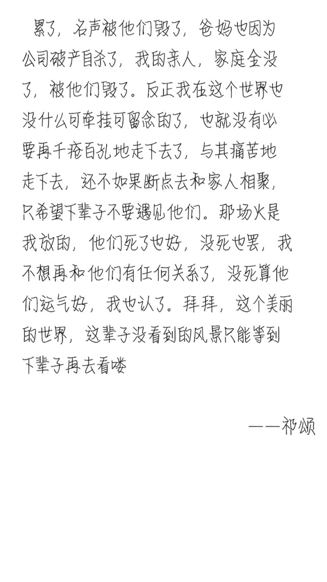 祁颂“我的名声被人民放在地上践踏,一夜之间从天之骄女变成人人喊打的过街老鼠,而罪魁祸首却在这安心的睡觉,怎么可能”