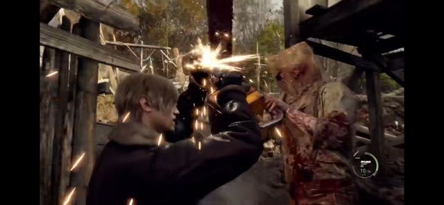 里昂·S·肯尼迪只能赌一把了(朝电锯男扔出一颗闪光弹)
