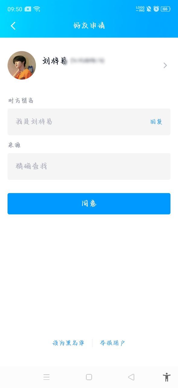 林诗妤到家之后打开了手机看到QQ有一条消息,打开一看是一条好友申请