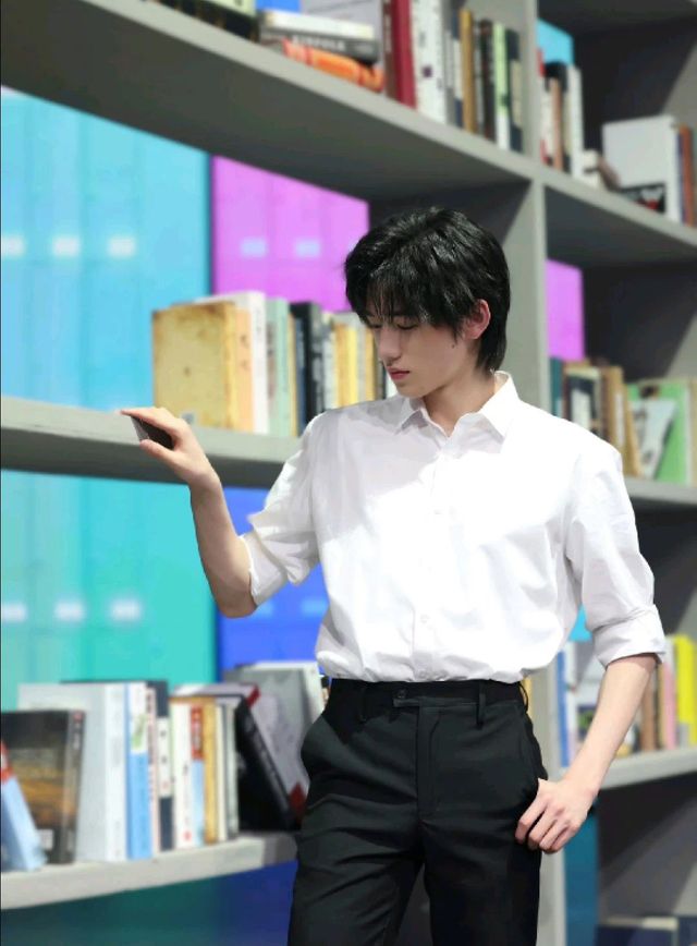 宋亚轩的造型很简单,白色衬衫黑色裤子,衬衫的袖子半挽起,露出精壮得恰到好处的手臂。