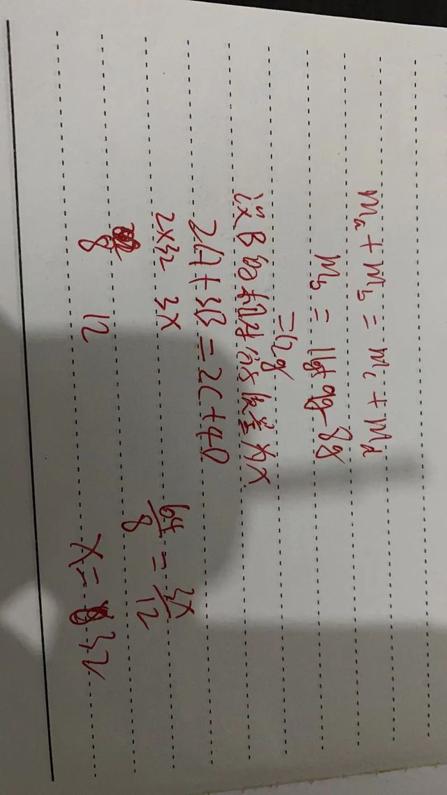 在反应2A+3B=2C+4D中,已知8gA完全反应生成11gC和9gD。若A的相对分子质量为32,则物质B的相对分子质量是多少