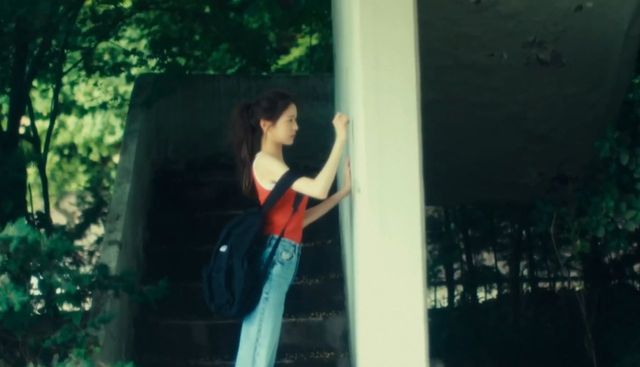 她以为这里只有自己一个人,她随意地走,手随意地摆,有时笑一笑,好像在自嘲。