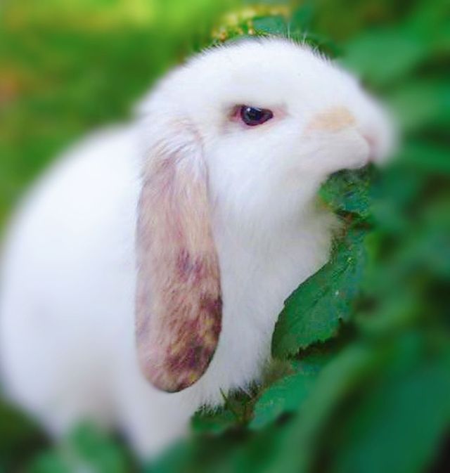 垂耳兔(不满意叼着扯下的半片薄荷叶任人抱起)