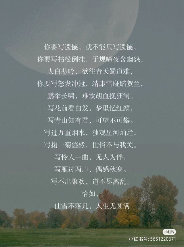 你要写遗憾,就不能只写遗憾 你要写枯松倒挂,子规啼夜含幽怨,