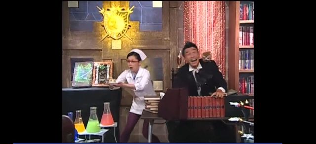 坚尼和蓝宝正在魔药学教室躲着