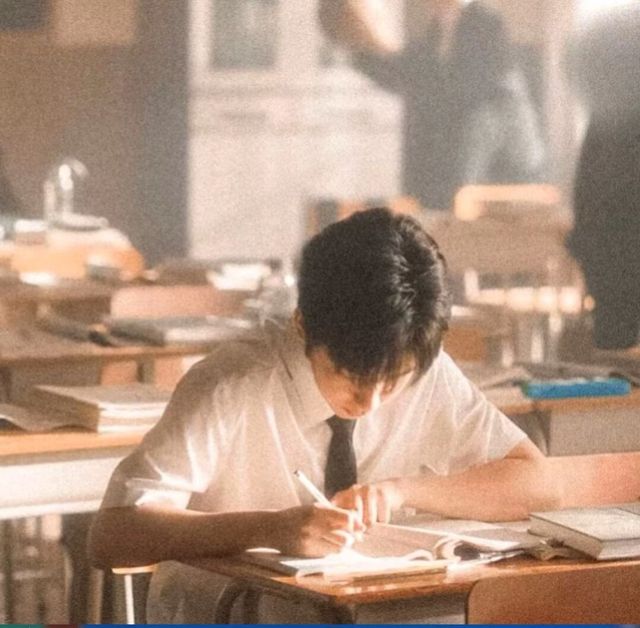 天色慢慢暗了下来,夕阳折射在屋子里,整个房间都是橘黄色的,她抬起头看到贺峻霖专注的写作业。