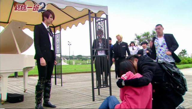 那个谁因为跟雷霆呛声,终极一班的同学把他的桌子搬到了外面,还在上面写了一些很不好的话。那个谁失望的坐到了外面。汪大东在帮雷婷找证据,证明雷婷没有说谎,更没有打那个谁的妹妹。刚好被花灵龙碰到了,花灵龙就和他一起做实验找出证据