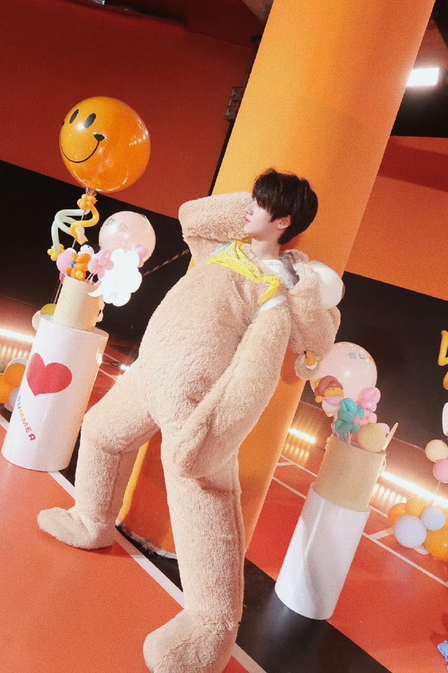 穿着小熊装,嫩的仿佛能掐出水