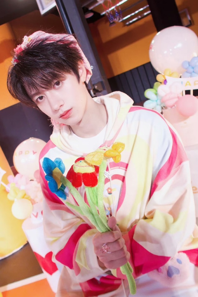 朱志鑫不知道什么时候从身后变出一束花
