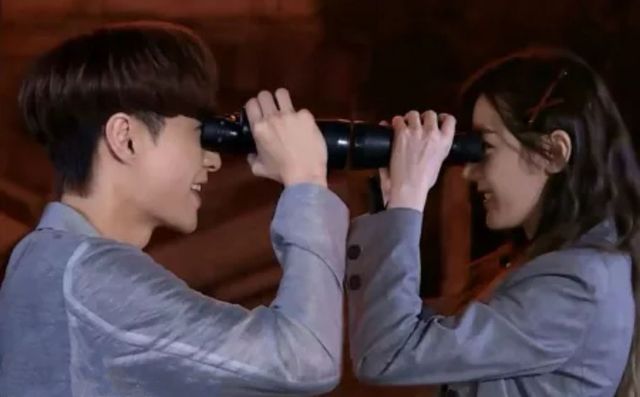 热巴和王迅拿着望远镜观察反应