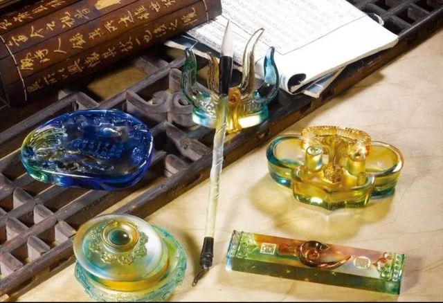 这琉璃制的文房四宝,按照清朝的工艺已经极为精妙,而上面多彩的福禄寿喜图案更是罕见。