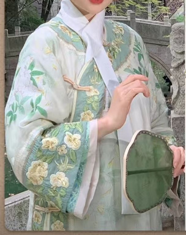 下裙是纯薄荷青色,与上身相得益彰。这一身更是衬的现在的安陵容