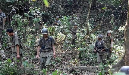 周龙让抬着伤员的担架的士兵先进入野人山,自己则率领剩下的士兵们,在一处高坡两边埋伏下。