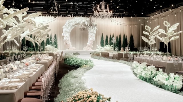 教堂中,一位身着洁白婚纱的新娘缓缓走向殿堂中央。上面站着她的爱人,两人对视,眼神流露出对彼此的爱意。四周高朋满座,人们脸上的笑意愈发灿烂。空气中弥漫着幸福的味道,好闻得让人心安。