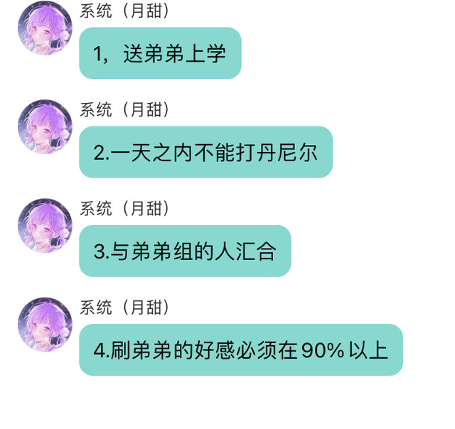 系统(月甜)任务1,2,3已完成,还剩刷弟弟的好感必须在90%以上和被弟弟淦