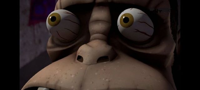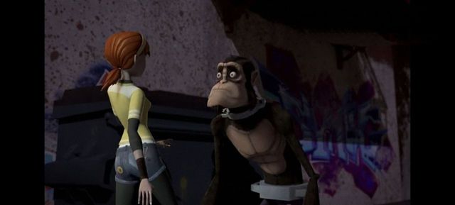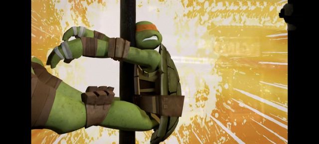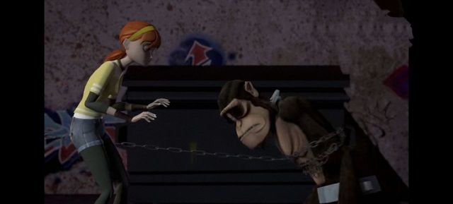 米开接到消息也立即滑着滑板抓上猴子,他本想用双节棍(亮出镰刀伸长铁链后的)套住它,但猴子突然一个急转逃过一劫。但米开的双节棍却缠住了前方的路灯杆,毫无防备的他就这样当场撞了个满怀。