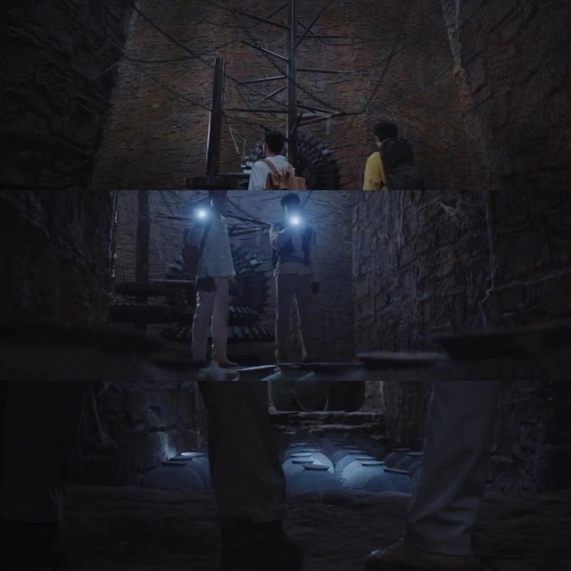 吴邪用手灯指着水轮说