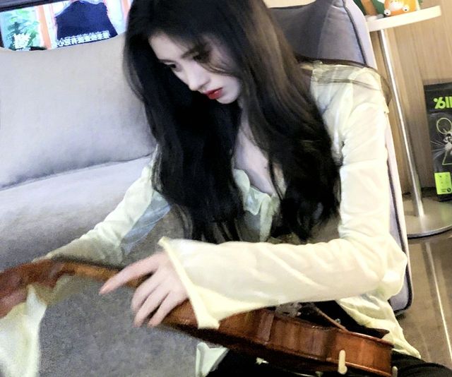 少女放下手中的小提琴
