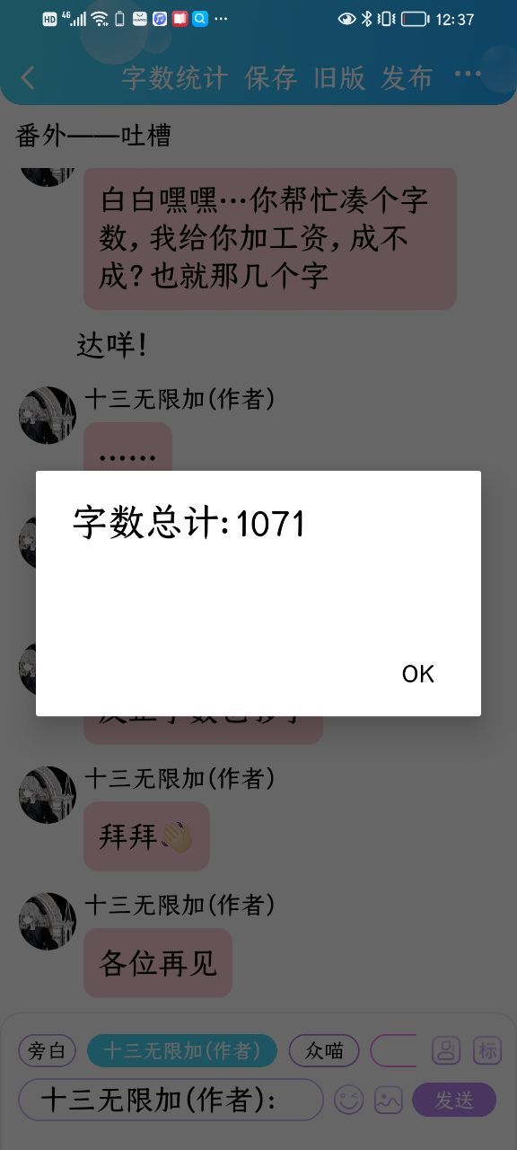 十三无限加(作者)还差了还差了40多个字