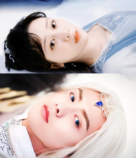 你们堆了两个雪人,并肩躺在雪地上,你的黑发和他的白发纠缠在一起,他看着你的侧脸勾起自己都没有察觉的微笑。