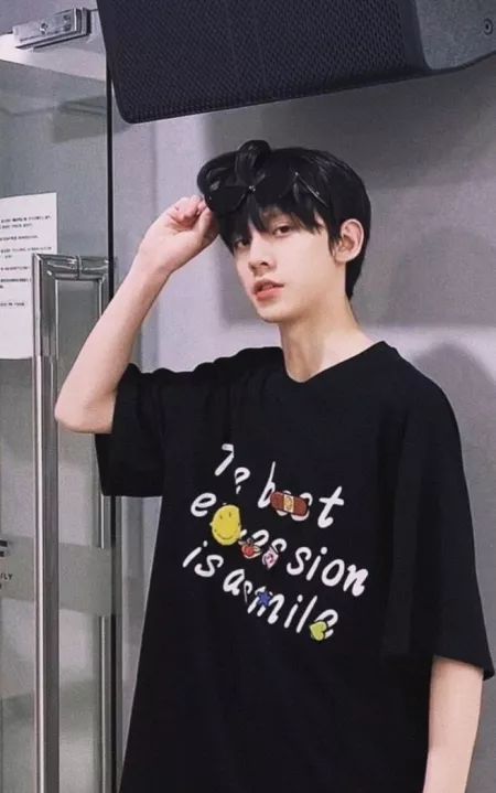 他的笑容温柔而明朗,仿佛回到了那一天阳光洒满庭院的场景。