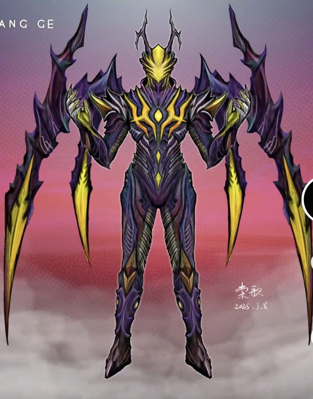 就在这时天空中出现了一个黑洞,随后从里面钻出了一个极具压迫感的怪兽,他浑身以紫色为主,拥有人形,背后是四个黄色的翅膀,手臂和翅膀仿佛那勾魂的镰刀般锋利