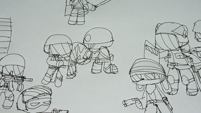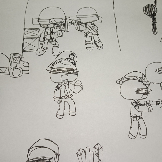 有一个军人,一个喷火清洁队。一个警察,一个武警组合的幸存者小队。