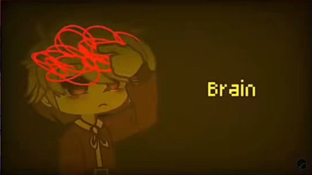 "brain"与上一张不同的是,背景变得黑暗,小月饼也没在笑,脸上画着一堆红线。