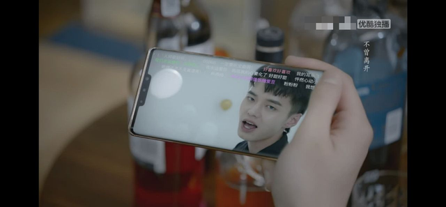 姚丹扬起嘴角举着手机