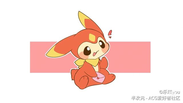 出现了一只有点像兔子的精灵,身体上半部分为红色,耳朵前段为黄色,脖子上带着黄色的围巾,眼眸为棕色,额头上端是黄色的四角图案,整体看上去娇小可爱