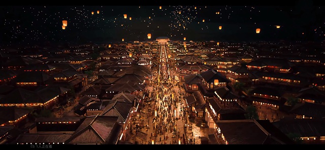 而另一边高大的朱雀门楼,却像一位忠诚的守卫注视着内外城繁华,要知道朱雀门晚上是不关的,站在门楼上,能看到内外城万家灯火以及脚下流淌如银河的金色御街,属实唯美壮观。