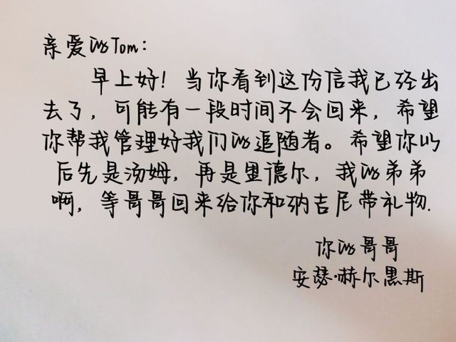 冷清的庄园里,一个相貌英俊的人坐在沙发上看着手中的字条: