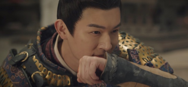 卢凌风把裴喜羡抱起,裴喜羡立刻紧紧回抱住他,泪水滴在卢凌风的金甲上。