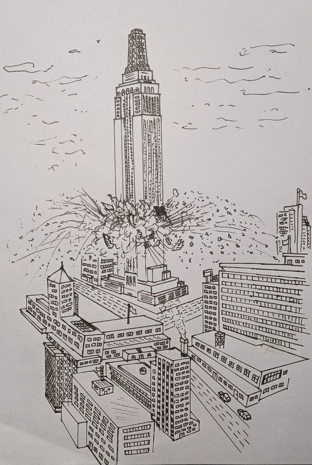 除了大家焦急的催促声,只有数不尽的坍塌、崩溃之声。很快,帝国大厦越来越摇摇欲坠。高楼层处,墙面开始大面积坍塌,夹杂着玻璃碎片、钢筋水泥一同砸了下来!即使是低楼层,墙面也开始开裂,随着警长的一声号令:“撤退!”数千名警探、数万名围观的市民,还是尖叫着远离这座危楼。