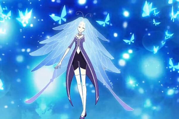 随着安安的召唤,蝴蝶花精灵王--琼出现在半空,释放自己的技能。